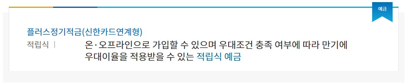 | 상품명 | 플러스정기적금(신한카드연계형) |